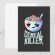 Entfesseln Sie die dunklere Seite Ihres Morgens mit dieser spielerischen "Cereal Killer"-Illustration, die eine schelhafte Schüssel mit farbenfrohen Müslisorten mit einem Löffel enthält, die mit einer Drehung von Spaß und Müdigkeit für den Tag bereit sind.