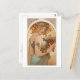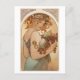 Eine schöne Kunstpostkarte mit dem Lithographie von Alphonse Mucha (1860-1939), mit dem Titel Fruit (1897). Eine modische Frau mit Lilienhaar, die einen Korb aus Trauben, Birnen und Äpfeln in sich trägt. Mucha, ein tschechischer Künstler, war während der Jugendstil-Periode ein produktiver Illustrator.