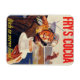 Vintage Werbung für die Fry's Cocoa aus dem frühen 20. Jahrhundert mit einem Piloten, dem eine Tasse heiße Schokolade angeboten wird.