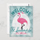 Ft Lauderdale Florida rosa Flamingo. Im Stil der Vintage-Reiseplakate heißt es "Welcome To Ft Lauderdale, Florida" in Rosa, Weiß und Pfefferminzgrün türkis.