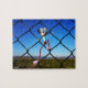 Fubby poppetje dat in het hek omhoog klimt. puzzle