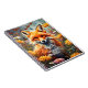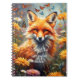 Ein hübscher kleiner Fuchs schaut dich an. Er sitzt zwischen Blumen und spielte mit Schmetterlingen.