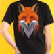 Ihr majestätisches geometrisches Fuchs T - Shirt-Design, mit tiefen Schwarz-Grautönen, einem einfachen Hintergrund und schwarzen Augen für ein kraftvolles und einfaches Aussehen.