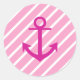 Fuchsia Anchor, rosa und weiße Streifen Runder Aufkleber