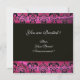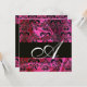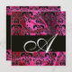 FUCHSIA BLACK SILK DAMASK CLOTH MONOGRAMM, weiß Einladung