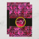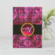 FUCHSIA BLACK SILK DAMASK RUBY MONOGRAMM, weiß Einladung