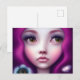 Fuchsia Hair Green Eyes Girl Postkarte