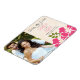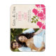 Wunderschöne inselbezogene Ankündigungen von hawaiianischen Hochzeitskünften und tropisches Foto speichern die Dattelmagnete mit heißen rosa und fuchsienfarbenen Hibiskus-Blume mit gelben Streifen und grünen Farnen. Passen Sie es mit dem Bild der Braut und Bräutigam zu sein. Ein cremefarbener Pergamenthintergrund verleiht diesem luauischen Hochzeit in Urlaubsort-Design Vintage Eleganz und ein tiefes Aussehen. Artwork © Chrissy H. Studios, LLC. Alle Rechte vorbehalten.