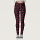 Niedliche Lippenprint-Leggings zeigen ein Allover-Muster von leuchtend fuchsienrosa Küssen auf schwarzem Hintergrund.