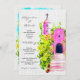 Fuchsia Mexikanische Kapelle mit Blumenwein Hochze Einladung
