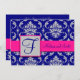 Fuchsia Navy Blue Silver Damask Save the Date 1B Einladung
