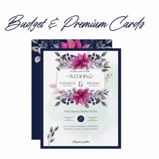 Schöne Fuchsia Pink und Navy Blauer Blumen Hochzeit Einladungen.