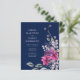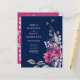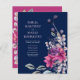 Schöne Fuchsia Pink und Navy Blauer Blumen Hochzeit Einladungen.
