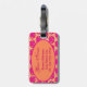 Fuchsia Pink Orange Art Nouveau Damask Monogramm Gepäckanhänger