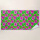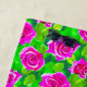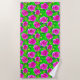 Badetuch in tiefgrünem Fuchsienrosa, Aquarell, Rose mit Blätter in Smaragdgrün