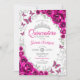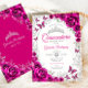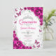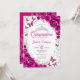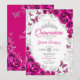 Fuchsia Pink Silver Floral Quinceanera Einladung
