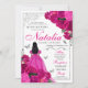 Fuchsia Pink & Silver Floral Quinceanera Zum Geburtstag Einladung