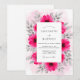 This design features striking magenta blooms that resemble zinnias, surrounded by soft gray foliage. A delicate blush pink watercolor wash adds a dreamy backdrop to the vibrant floral arrangement. The high-contrast palette creates a bold and romantic atmosphere, perfect for a lively seasonal event.