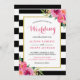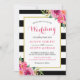 Fuchsia Raspberry Floral Stripes Moderne Hochzeit Einladung