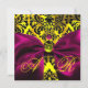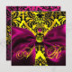FUCHSIA RIBBON GOLD YELLOW BLACK DAMASK MONOGRAMM EINLADUNG