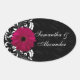 Fuchsia Scroll Gerbera Daisy w/Black and White Ovaler Aufkleber