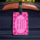 Für Liebhaber von Rosa! Identifizieren Sie Ihr Gepäck, Ihren Rucksack oder Ihre Computertasche mit diesem lustigen und stilvollen Gepäckanhänger mit einem modernen Damast Muster-Design, das Sie mit Ihren Monogramm-Initialen oder Namen im rosa ovalen Bereich personalisieren können. Fügen Sie Ihre Kontaktinformationen auf der Rückseite ein. Dieses romantische Damast-Grafikdesign ist elegant mit einem zeitgenössischen, modernen, frischen Anklang aus der originalen Kunst Pariser Damask von Phyllis Dobbs. Die Farben sind hell und dynamisch in raffinierten Fuchsienrosa-Tönen, die auf einem hellrosa Damastmuster-Hintergrund angeordnet sind. Vollständig anpassbar, um mit Ihrem Monogramm, Ihrem Namen, Ihrem Firmennamen oder anderen Wörtern zu personalisieren. Karo alle anderen Produkte mit diesem Damast-Design von der Elektronik bis zur Schreibwaren, Einladungen, Kleidung, Büromaterial, Visitenkarten und vielen anderen lustigen Koordinationsprodukten. Parisian Damask ist in mehreren Farbkombinationen erhältlich, um Ihnen eine große Auswahl an Farben zu bieten. Vollständig anpassbar.