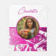 Fuchsia und White bedrückte metallische Design mit Custom Foto and Name - fügen Sie einfach Ihr Lieblingsfoto auf diese Personalisierte Decke nach der Anpassung mit Ihrem Namen.