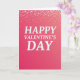 This greeting card features the words “HAPPY VALENTINE’S DAY” in large white serif letters centered vertically, standing out clearly against a smooth background that fades from soft blush pink at the top to deep fuchsia-red at the bottom. The strong contrast makes the message feel direct and affectionate ❤️. Above the text, small white hearts and tiny round dots drift down from the top edge like a light sprinkle, adding a gentle, celebratory motion. The scattered shapes vary in spacing so the top area feels airy rather than patterned, like confetti caught in a calm breeze. With the warm pink-to-red color shift behind it, the layout suggests closeness and a shared moment, as if the card is leaning in to say something sweet 🥰. The lettering stays crisp and centered while the falling shapes frame it without covering the words. Near the top margin, the white hearts and dots cluster a bit more densely before thinning as they descend toward the middle.