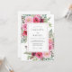 This design features a vibrant arrangement of fuchsia and blush pink ranunculus paired with dark anemones. Lush greenery, including eucalyptus leaves and delicate ferns, provides a fresh botanical backdrop. The watercolor aesthetic creates a romantic and airy mood, perfect for a nature-inspired spring nuptial.