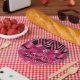 Fuchsie des Glitzer Zickzack Bling Diamant-Bogens Pappteller
