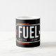 Eine Tasse der FUEL Racing League mit schwarzem Hintergrund, Rennbahnen, einer orangefarbenen Krone und einem weißen Stern. Es ist das ideale Geschenk für alle auf Ihrer Liste, einschließlich sich selbst, Ihre Lieben, Freunde, Kollegen, und mehr.