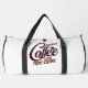 This white duffle bag is perfect for those who love their coffee and a good mystery. It features the phrase "FUELED BY Coffee and TRUE CRIME" in a stylish script and bold font. A small coffee cup icon adds a charming touch. Ideal for true crime podcast listeners, mystery lovers, or anyone needing a daily dose of both. Edit color of the bag caps and body in the Design tool to your favored colors.