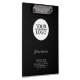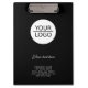 Fügen Sie Ihr Logo mit der Schwarzen Zwischenablage der Werbeaktion für benutzerdefinierte Textfirmen hinzu. Fügen Sie Ihr Logo hinzu und passen Sie den Text, den Firmennamen, die Adresse und die Kontaktinformationen an. Werbeaktion oder Schenkung für Ihre Kunden und Geschäftspartner.