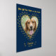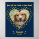 Das Foto für das Foto eines geliebten Hundes oder einer Katze für dieses spezielle Foto-Gedenkmal 8x10 mit Goldfolie. Perfektes Denkmal für einen geliebten Haushund oder eine Haustierkatze. Der Name und die Lebensjahre können auch personalisiert sein. Der Vers sagt, du verlasse Pfotendrucke auf unseren Herzen. Dies kann auch auf das geändert werden, was Sie gewollt haben. Holen Sie sich diese schöne Goldfolie als Geschenk zum Gedenken an das verlorene Haustier einer Person. Echte goldfarbene Folie und Pfote drucken Foto-Rahmen, gepaart mit echtem goldenen Folie personalisierte Formulierung. Die marineblau Hintergrundfarbe kann in jede andere Farbe, die Sie im Designwerkzeug gewollt haben, geändert werden.