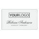 Elegante Namensschilder mit Ihrem Namen, Titel und eigenem Logo. Mit dem Design-Tool können Sie das Logo verschieben und verkleinern.