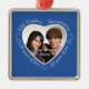 Ein individuelles Hängeornament für einen 20-jährigen Hochzeitstag zu schaffen ist einfach. Laden Sie einfach ein Lieblingsbild hoch und es erscheint im Rahmen der Herzform. Die quadratische Umgebung ist blau mit einer hübschen weißen Grenze um das Foto und hat die Worte: 20. Hochzeitstag, 20 Jahre Liebe, 20 Jahre Freude. Eine schöne Art, 20 Jahre Ehe gemeinsam zu feiern.