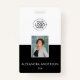 Mit diesem individuellen Mitarbeiter ID-Abzeichen erstellen Sie ein berufliches und poliertes Aussehen, mit dem Sie Ihr Logo, Ihr Mitarbeiterlogo, Ihr Foto, Ihren Namen und Ihren Titel in einem eleganten und modernen Layout anzeigen können. Dieses Abzeichen ist perfekt für Unternehmen, Schulen, Veranstaltungen oder Organisationen geeignet und bietet Sicherheit und Identifikation bei gleichzeitig elegantem Erscheinungsbild. Dieses Abzeichen aus langlebigen, hochwertigen Materialien ist so gebaut, dass es dem täglichen Gebrauch standhält. Das einfache Schwarz-Weiß-Design sorgt dafür, dass Ihr Text und Ihre Bilder sich klar abheben und so Mitarbeiter und Teammitglieder auf einen Blick leicht erkennen. Ein Steckplatz an der Oberseite ermöglicht eine einfache Befestigung an Lanyards, Clips oder Abzeichen-Rollen, wodurch Vielseitigkeit und Komfort gewährleistet sind. Ob Sie eine Corporate ID, ein Abzeichen für Konferenzen, eine Schulpersonal-ID oder einen Freiwilligenausweis benötigen, dieses individuell anpassbare Design funktioniert für jede Umgebung. Fügen Sie Ihr Firmenlogo hinzu, personalisieren Sie es mit Namen und Titeln und schaffen Sie eine einheitliche berufliche Identität in Ihrem Team. Dieses benutzerdefinierte ID-Abzeichen ist sowohl praktisch als auch beruflich für Markendarstellung, Sicherheit und Erkennung.