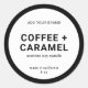 Dieses moderne, minimalistische Produktetikett hat ein weißes, rundes Zentrum und eine bearbeitbare Hintergrundfarbe (klicken Sie auf Anpassen, um es zu ändern), die Sie von schwarz auf das Ihrer Wahl ändern können. Es ist ein perfektes Etikett für Kerzen, Kosmetikprodukte, etc. Personalisieren Sie es, indem Sie den Platzhalter-Text durch Ihren eigenen ersetzen. Für weitere Optionen, wie zum Beispiel den Schriftart zu ändern, ist es die Größe und Abstand zwischen den Buchstaben klicken Sie auf die Schaltfläche "Anpassen". *Bitte beachten Sie, dass das Zazzle-Wasserzeichen, das in der Zoomvorschau angezeigt wird, NICHT auf dem gedruckten Endprodukt erscheint. © Rosewood and Citrus