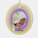 Ein hübscher Ringrahmen aus Gold und lila, um Ihr eigenes Foto zu betonen. Dieses Design ist für Sie bereit zu personalisieren. Ein süßer kleiner Engelsschneemann betont den Boden. Die Worte "unser kleiner Engel" können nach Ihren Wünschen geändert oder geändert werden.