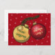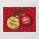 Erleben Sie Weihnachtsjubiläum mit dieser festlichen Postkarte, die einen Cartoon von zwei Baubles auf einem Xmas-Zweig, einem glänzenden Gold und einem glänzenden Rot enthält. Der Standardtext lautet "Frohe Weihnachten! Liebe aus Laura X". Ändern Sie den Namen in Ihre eigene, oder senden Sie eine ganz andere Nachricht; fügen Sie einfach Text hinzu, bearbeiten oder entfernen Sie ihn, um ihn zu erreichen. Auch die Hintergrund- und Textfarbe kann auf Wunsch geändert werden.