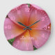 Fügen Sie Ihren Namen Pink Plumeria Blume Clock mi Große Wanduhr