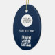 Fügen Sie Ihren Logo QR Code mit benutzerdefinierten Text Werbeaktion Blue Keramik Ornament. Fügen Sie Ihr Logo und QR-Code in die Vorlage ein und passen Sie den Text an. Werbeaktion oder Schenkung für Ihre Kunden und Geschäftspartner.