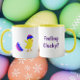 Fügen Sie mit diesem bezaubernden Design, das ein flauschiges Küken zeigt, das aus seinem Ei schlüpft, neben dem spielerischen Ausdruck „Feeling Clucky?“ ein bisschen Frühlingszauber und Humor hinzu. Süß, witzig und ein bisschen frech bringt dieses Design überall ein Lächeln ins Gesicht.