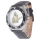 Herrenuhr aus Edelstahl mit schwarzem Lederarmband
