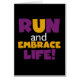 Wenn Sie Liebe laufen, 5 Ks laufen, 10Ks, Halbmarathons oder Marathons, werden Sie diese farbenfrohe Textgestaltung in lila und gelb, dass Run und Embrace Life Liebe! Lauf und Embrace Life T - Shirt, Hoodies, Magnete, Tasten, Karten, Aufkleber, Schlüsselketten und viele andere Gegenstände für Läufer, die ein helles, farbenfrohe Laufdesign Liebe!