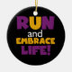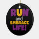 Wenn Sie Liebe laufen, 5 Ks laufen, 10Ks, Halbmarathons oder Marathons, werden Sie diese farbenfrohe Textgestaltung in lila und gelb, dass Run und Embrace Life Liebe! Lauf und Embrace Life T - Shirt, Hoodies, Magnete, Tasten, Karten, Aufkleber, Schlüsselketten und viele andere Gegenstände für Läufer, die ein helles, farbenfrohe Laufdesign Liebe!