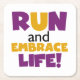 Wenn Sie Liebe laufen, 5 Ks laufen, 10Ks, Halbmarathons oder Marathons, werden Sie diese farbenfrohe Textgestaltung in lila und gelb, dass Run und Embrace Life Liebe! Lauf und Embrace Life T - Shirt, Hoodies, Magnete, Tasten, Karten, Aufkleber, Schlüsselketten und viele andere Gegenstände für Läufer, die ein helles, farbenfrohe Laufdesign Liebe!