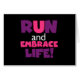 Wenn Sie Liebe laufen, laufen 5 Ks, 10Ks, Halbmarathons oder Marathons, werden Sie diese farbenfrohe Textgestaltung in lila und rosa, dass Run und Embrace Life Liebe!