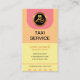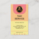 Ein eleganter Pastellton. Das goldene Logo eines Chauffeurs ist in einem hellroten Abziehkarton oben auf der Karte zu sehen. Danach folgt die Geschäftsoption "Taxi Service" ; Sie können es in den Anzug Ihrer Art von Transportunternehmen ändern, z.B. Limo Service, Flughafen-Taxi etc. In der Nähe der Mitte befindet sich eine hellgelbe Säule. Hier finden Sie Ihren prestigeträchtigen Namen und Ihren Jobtitel. Unten befinden sich die Kontaktdaten. In der Nähe der Kartenbasis liegt die Adresse.