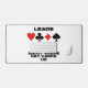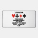 Bridge-Spieler werden von dieser Tischmat mit den vier Kartenkarten-Anzügen und dem folgenden "Brücken-Truism"-Sprichwort profitieren: "Leads Provide Significant Clues About Where Key Cards Lie". Ein unvergesslicher Bridge-Tipp für jeden Bridge-Spieler, der häufig in der Verteidigung ist und versucht zu beurteilen, wo die Schlüsselkarten liegen!